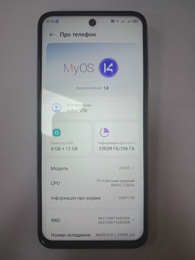 Характеристики Мобільний телефон Zte nubia v70 8/256gb: