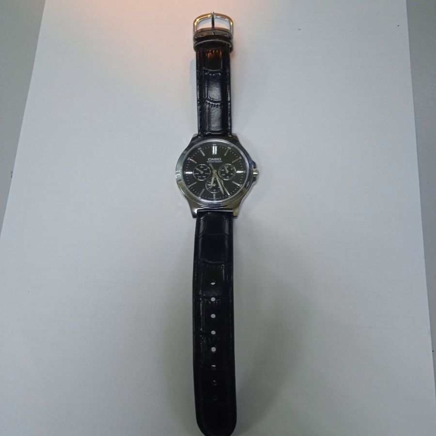 Casio MTR-V300 — это надежный цифровой наручный хронограф, созданный для активного использования. Модель отличается прочным корпусом из смолы, устойчивым к ударам и вибрациям, что делает её отличным выбором для спорта и повседневной носки. Данный экземпляр находится в отличном внешнем состоянии: стекло и корпус не имеют заметных царапин или сколов, ремешок сохранил свою целостность и не имеет потертостей. Все функции работают корректно: точный ход, подсветка дисплея, секундомер, будильник и календарь. Часы готовы к немедленному использованию, их состояние можно охарактеризовать как «почти новые». Это практичное и долговечное решение по привлекательной цене для тех, кто ценит функциональность и качество Casio.