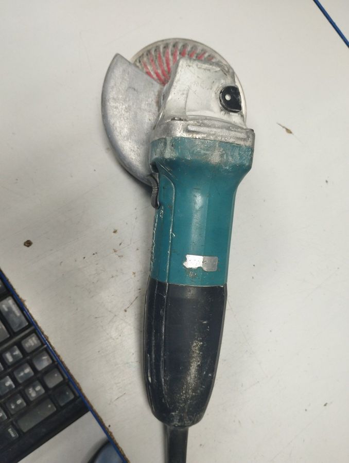 Угловая шлифовальная машина Makita GA5030 — это надежный профессиональный инструмент с мощным двигателем на 720 Вт, рассчитанный на работу с дисками диаметром 125 мм. Модель GA5030 известна своей выносливостью и эргономичной конструкцией, обеспечивающей удобный хват и снижение вибрации. Данный экземпляр имеет заметные следы эксплуатации, что свидетельствует о его активном использовании в прошлом. Все основные функции, включая блокировку шпинделя для быстрой смены дисков и защиту от случайного пуска, сохраняют работоспособность. Инструмент готов к дальнейшей эксплуатации для резки, зачистки и шлифовки различных материалов.