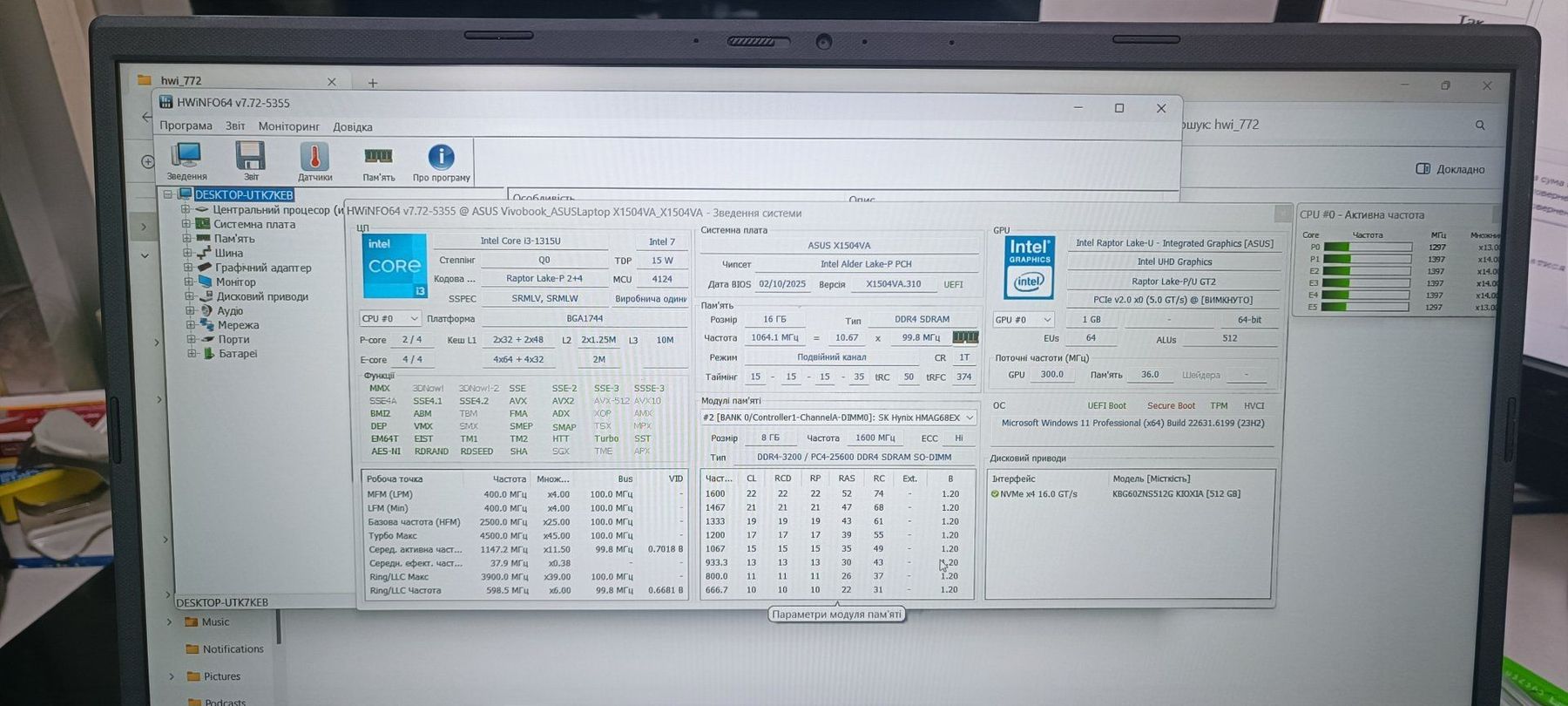 Asus 15/core i3-1315u ddr5/16gb ddr5/ssd 512 gb/*інтегрована