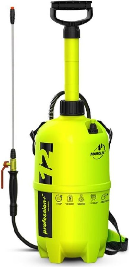 Опрыскиватель Marolex Profession 12 – это переносной помповый агрегат с рабочим объемом бака 12 литров, рассчитанный на регулярную обработку растений и поверхностей в саду, теплице, на приусадебном участке и производственных объектах. Прочный пластиковый резервуар устойчив к механическим воздействиям и рассчитан на работу с большинством садовых и моющих препаратов при соблюдении рекомендаций производителя. Телескопическая штанга с возможностью регулировки длины и регулируемое сопло позволяют менять факел распыла от мелкодисперсного тумана до более направленной струи, что удобно при обработке как крон деревьев, так и точечных участков. Насос с ручным приводом создает стабильное давление внутри бака, а предохранительный клапан снижает риск его превышения. Эргономичная рукоятка, плечевой ремень и гибкий шланг обеспечивают комфорт при длительной работе, а широкое горловое отверстие облегчает заливку раствора и промывку по окончании сезона. Модель подходит для опрыскивания средств защиты растений, удобрений, дезинфектантов и мягких моющих составов в садоводстве, ЖКХ, на небольших фермерских хозяйствах. При покупке Marolex Profession 12 б/у имеет смысл обратить внимание на состояние прокладок, насоса и шланга: при аккуратной эксплуатации корпус бака и штанга отличаются длительным сроком службы, поэтому подержанный опрыскиватель может быть экономичным решением при сохранении полной функциональности.