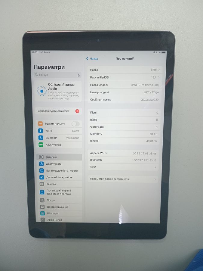 Характеристики Планшет Apple ipad 10.2 2021 wi-fi 64gb: