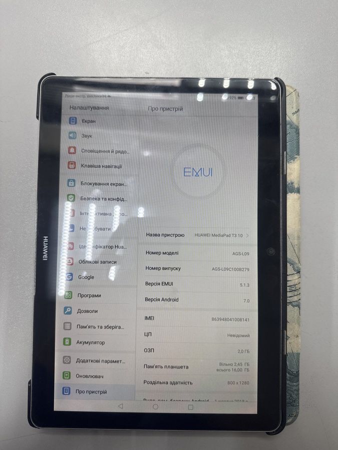 Б/у Планшет Huawei mediapad t3 10 16gb 01-200909420