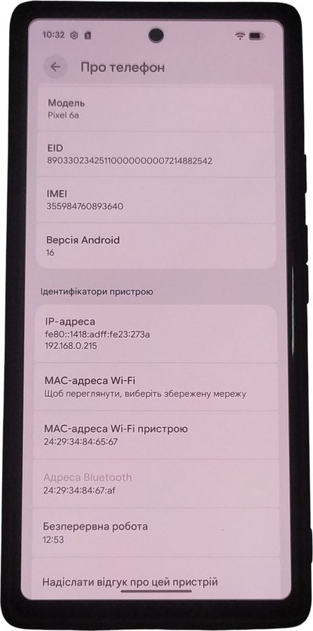 Характеристики Мобильный телефон Google pixel 6a 6/128gb: