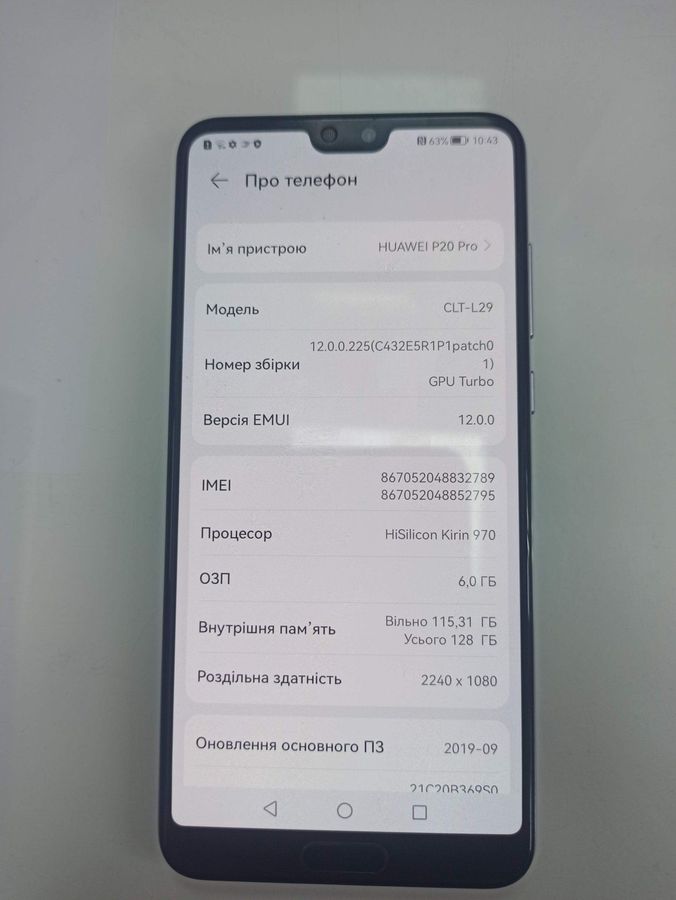 Характеристики Мобильный телефон Huawei p20 pro 6/128gb:
