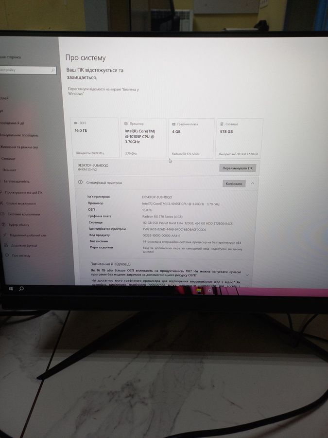 Пк intel core i3-10105f/ram 16 gb/hdd відсутній/ssd 120 gb+360 gb/amd/ ati radeon rx 570 4gb gddr5 256b
