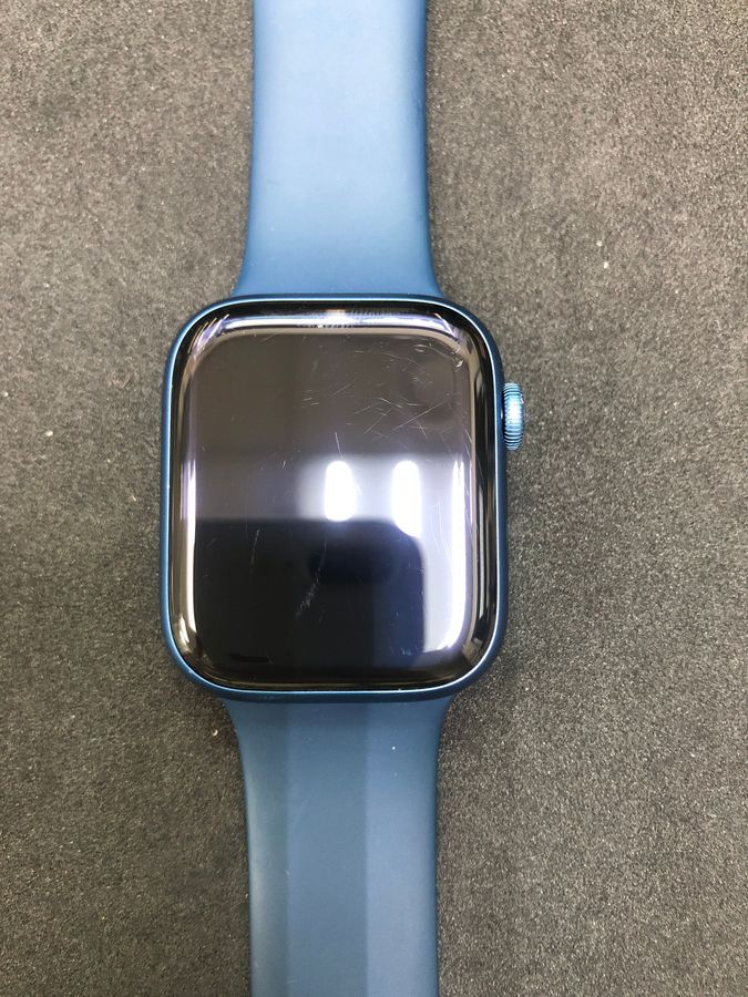 Apple Watch Series 7 45mm в голубом цвете. Эта модель отличается увеличенным и прочным дисплеем Retina, который на 20% больше, чем у Series 6, и имеет более тонкие рамки. Часы находятся в хорошем рабочем состоянии, с незначительными следами использования, характерными для б/у техники. Корпус и экран не имеют серьезных повреждений. Модель поддерживает быструю зарядку, функцию Always-On Retina, защиту от воды WR50 и все ключевые функции для фитнеса и здоровья, включаь измерение ЭКГ и уровня кислорода в крови. Это отличный вариант для тех, кто хочет получить флагманскую модель Apple Watch по более доступной цене.