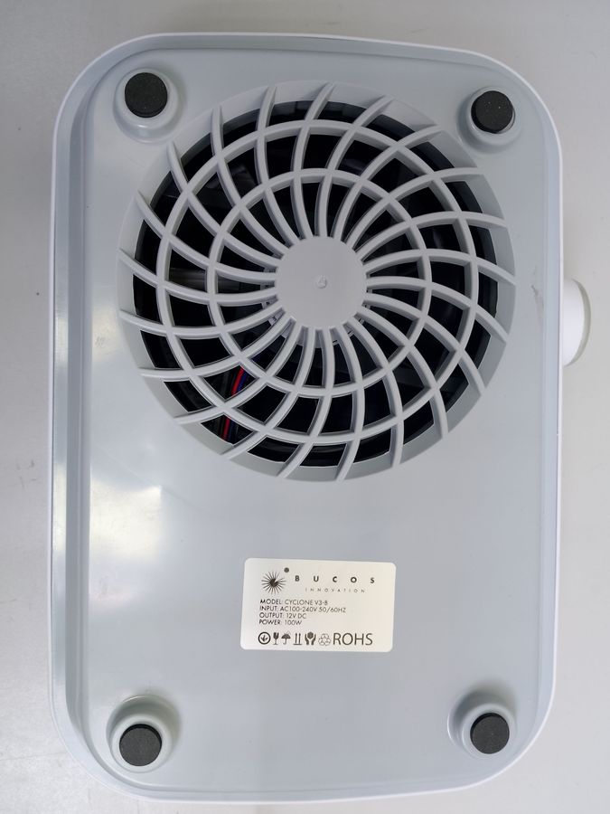 Манікюрна витяжка Bucos Cyclone V3-B — це професійний прилад для ефективного видалення пилу та запахів під час роботи з нігтями. Модель Cyclone відома своєю потужною системою циклонної фільтрації, що забезпечує чисте повітря в робочій зоні. Ця конкретна одиниця має відмінний зовнішній вигляд у білому кольорі, без видимих подряпин або пошкоджень. Втяжка демонструє стабільну роботу двигуна, регулятор швидкості функціонує коректно. Фільтри (якщо залишилися) потребують перевірки та можливої заміни, що є стандартною процедурою для б/у обладнання. Пристрій готовий до використання в домашньому або невеликому професійному середовищі.