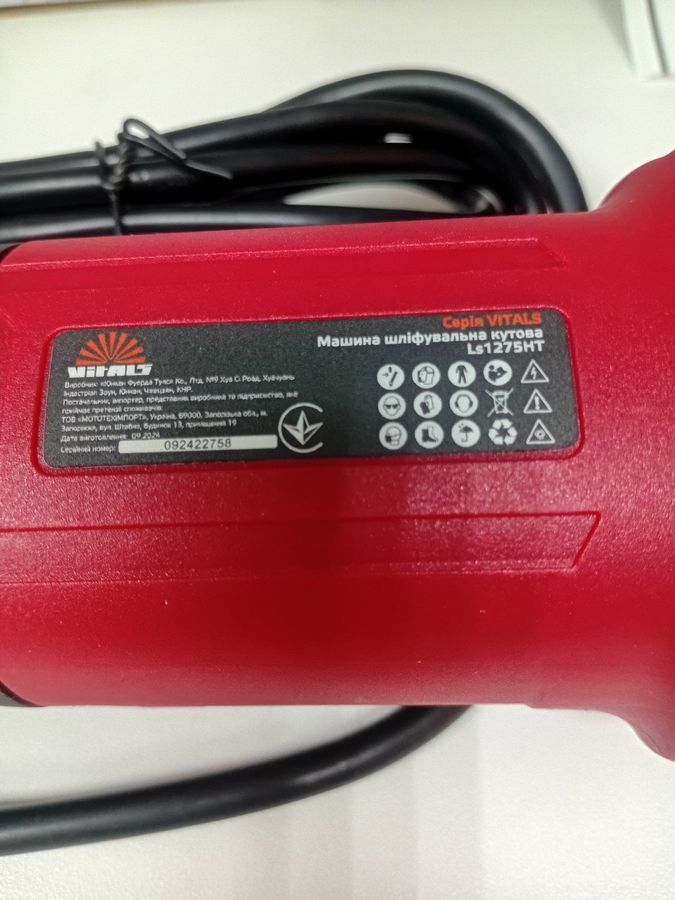 Характеристики Шліфмашина кутова Vitals master ls1275ht: