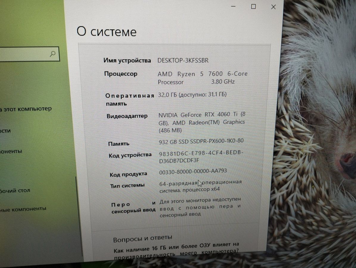 Характеристики amd ryzen 5 7600/ram 32 gb/hdd відсутній/ssd 1000 gb/nvidia rtx 4060 ti (geforce) 8gb gddr6 128bit: