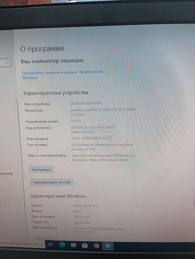 - Модель процесора: Core i3-6100