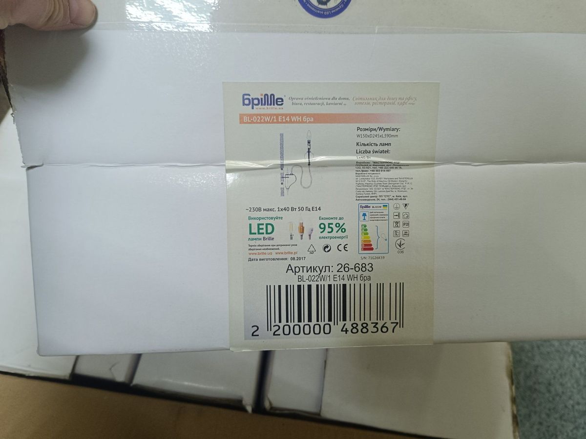Світильник настінний Brille bl-022w/1 e14 wh б/в