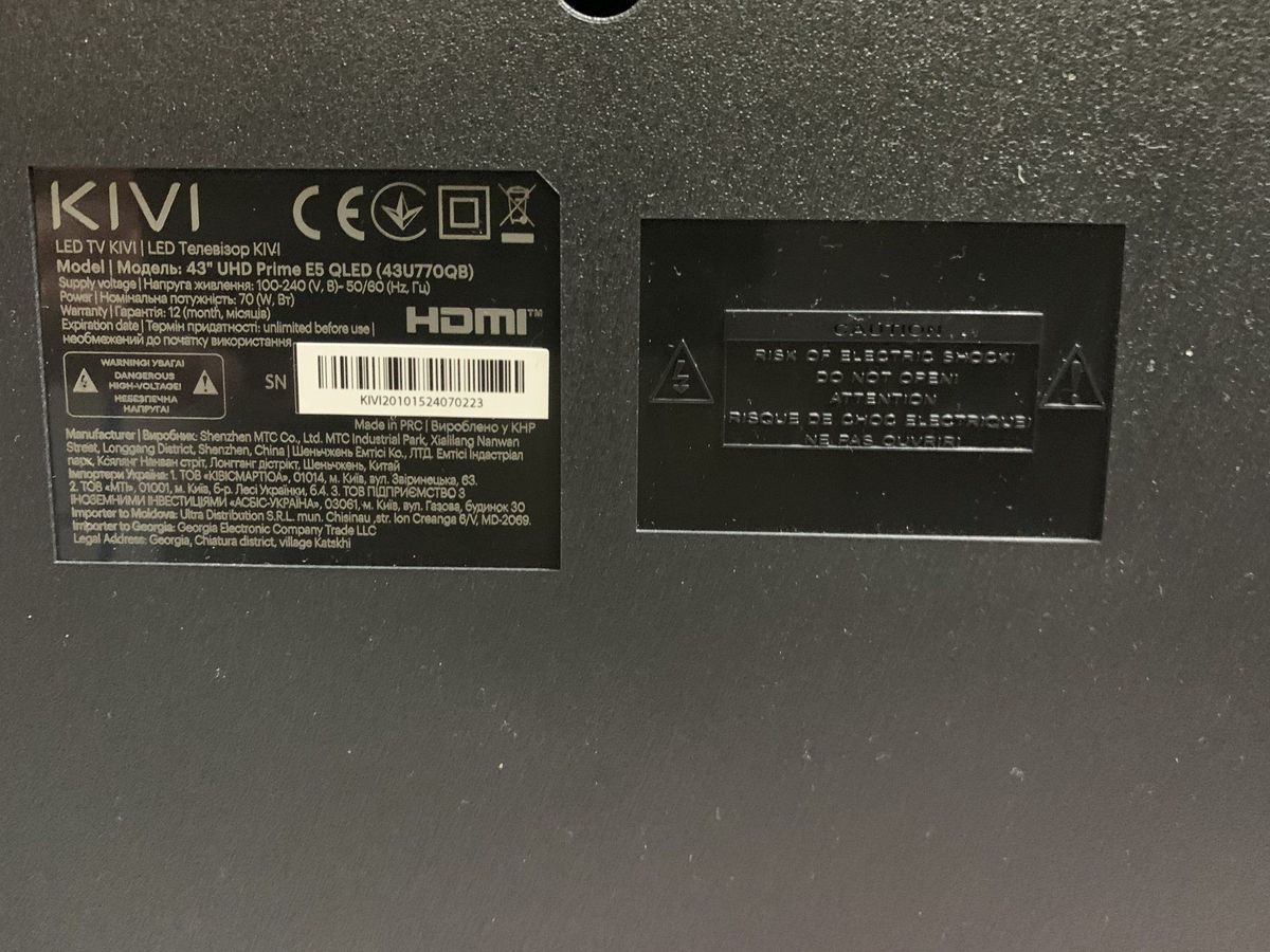 Б/в Телевізор Kivi 43'' uhd prime e5 qled 01-200838742