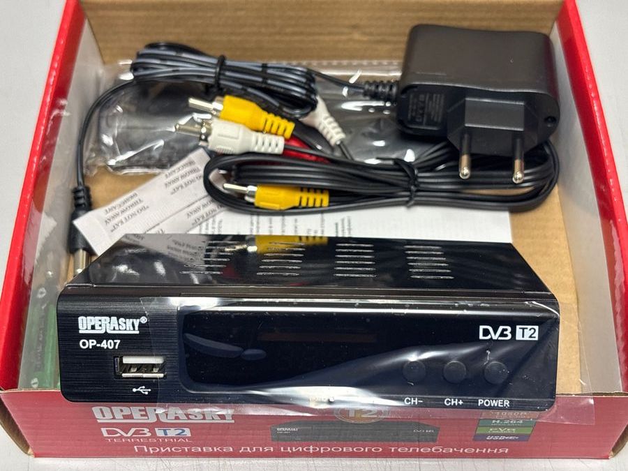 ТВ тюнер Opera OP 407 — це цифровий ресивер DVB-T2 для прийому безкоштовного ефірного телебачення у високій якості. Модель OP 407 від бренду Opera пропонує базовий, але надійний функціонал для перегляду цифрових каналів. Цей пристрій знаходиться у стані, максимально наближеному до нового, без видимих слідів експлуатації. Корпус чорного кольору зберіг свій первісний вигляд, без сколів та потертостей. Тюнер готовий до роботи — достатньо підключити його до телевізора та антени для доступу до численних цифрових каналів. Це просте та практичне рішення для модернізації старого телевізора або організації другої ТВ-точки без зайвих витрат.