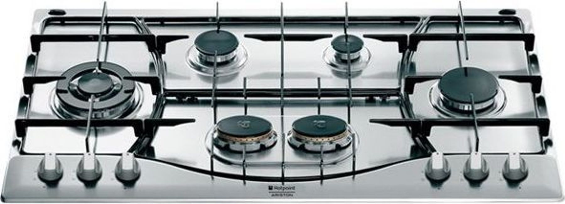 Варильна поверхня Hotpoint-Ariston PH 960 MST – це газова панель збільшеного формату з п’ятьма конфорками, розроблена для одночасного приготування кількох страв і зручна на просторих кухнях та в домогосподарствах, де часто готують. Центральний потужний пальник типу «потрійна корона» забезпечує інтенсивний і рівномірний нагрів дна посуду, що особливо важливо під час роботи з вок-сковородами й великогабаритними каструлями. Інші конфорки різної потужності дають змогу економно готувати соуси, гарніри та страви, які потребують повільного нагрівання. Поверхня з нержавіючої сталі стійка до високих температур і легко очищується від типових кухонних забруднень, а чавунні решітки гарантують стійкість посуду й розраховані на тривалий термін служби. Механічні поворотні перемикачі з вбудованим електрозапалюванням дозволяють запалювати пальники однією рукою без використання сірників або запальничок, а система газ-контролю перекриває подачу газу в разі згасання полум’я, підвищуючи загальний рівень безпеки. Модель належить до незалежних варильних поверхонь і може монтуватися над духовою шафою або окремо, що дає більше свободи під час планування кухонного простору.