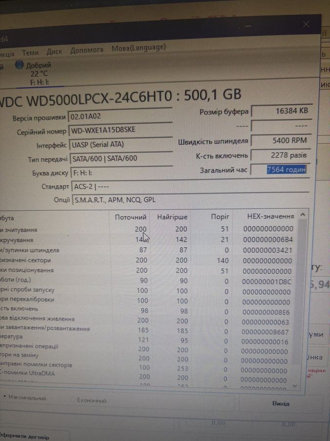 Б/в Жорсткий диск Wd blue 2.5" 500 gb 01-200905958