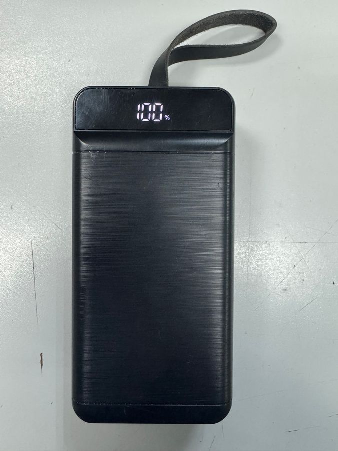 Пропонуємо зовнішній акумулятор Xo model pr 158 22/5W ємністю 50000 mAh. Це потужна модель з підтримкою швидкої зарядки 22.5W, здатна кілька разів зарядити смартфон або забезпечити енергією планшет. Пристрій має помітні сліди використання: потертості та дрібні подряпини на корпусі, що вказує на активну експлуатацію в минулому. Однак це не впливає на його основну функцію — накопичення та віддачу енергії. Акумулятор продається без кабеля та адаптера. Це практичне рішення для тих, кому потрібне надійне джерело автономного живлення з великою ємністю, готове до подальшого використання.